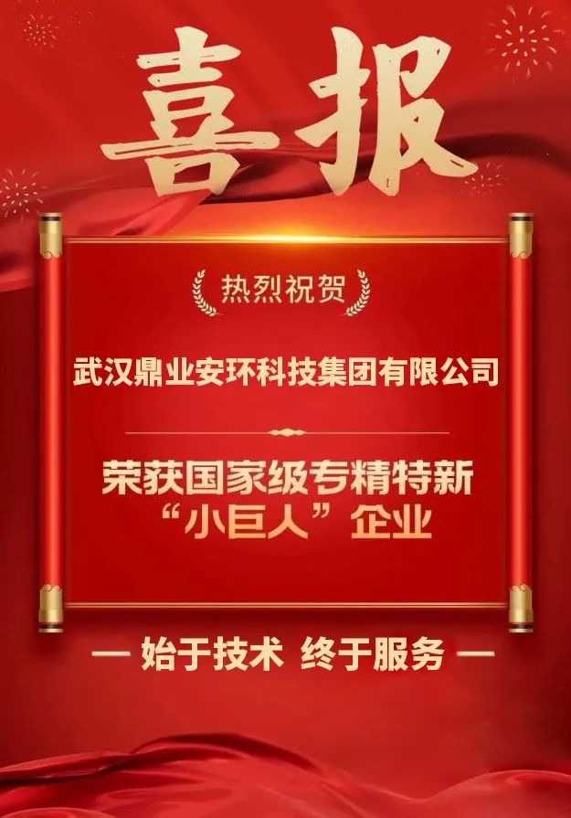 2023年7月14日,國家工信部發布了第五批專精特新“小巨人”企業名單,武漢鼎業安環科技集團有限公司(原武漢鼎業環保工程技術有限公司)憑借在安全環保領域的綜合實力和科技創新能力,榮獲國家級專精特新“小巨人”企業!